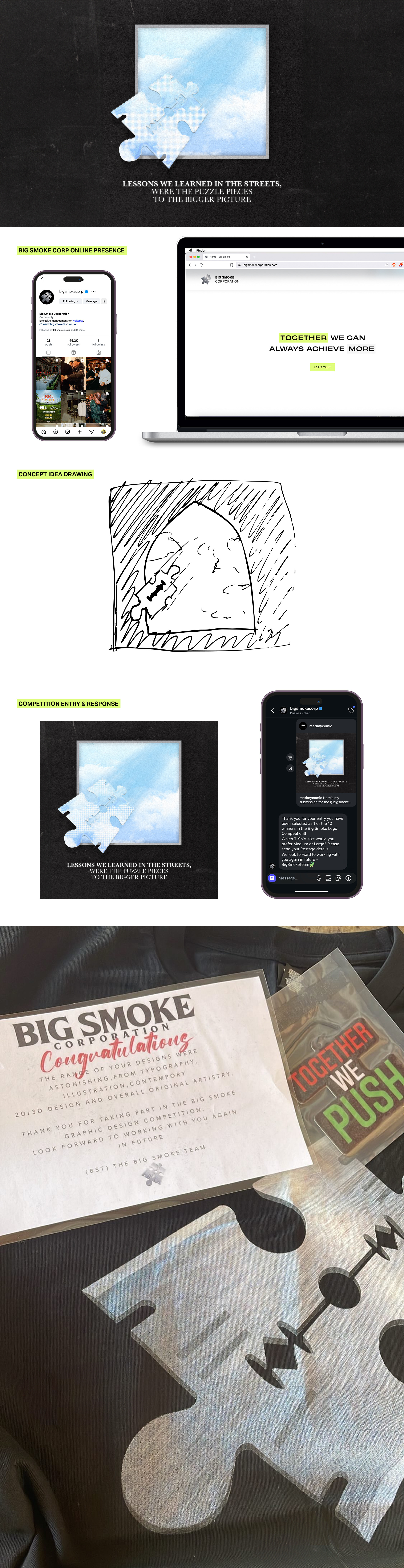 Big Smoke Corporation is a London based company that specialises in management, brand partnerships, & consultancy. In 2022 they did a design based competition to scout creatives. The brief was to re-imagine their existing logo / T-shirt design. I was 1 of 10 winners, which I'm extremely proud of as there was some amazing entries from all sorts of creative backgrounds.