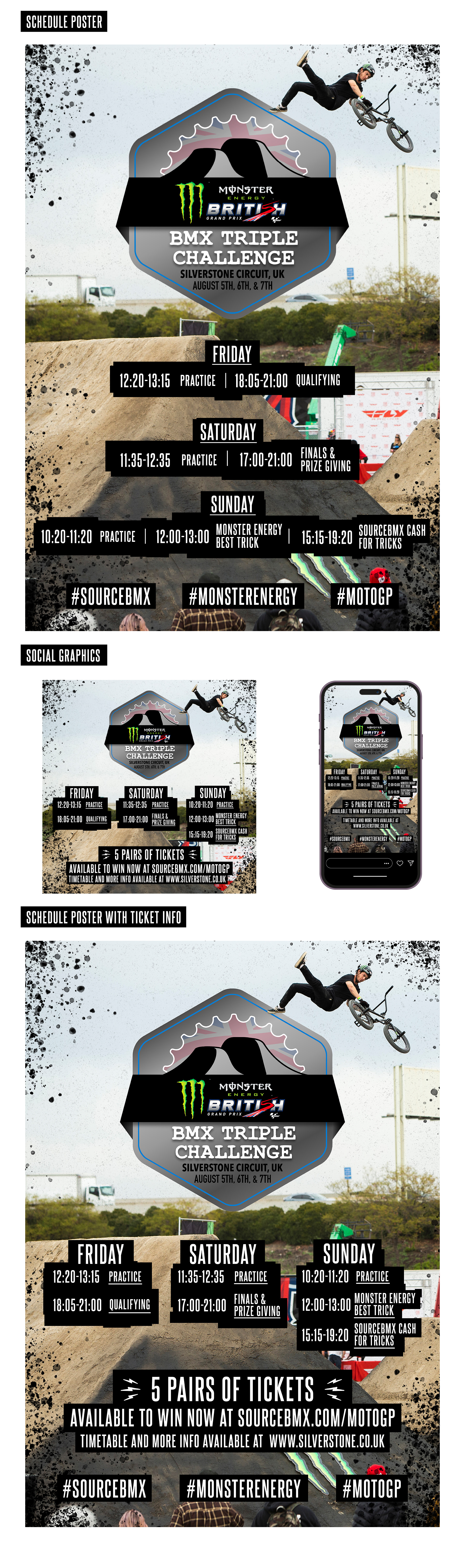 Monster Energy hosted a major BMX event in collaboration with Source BMX during the MotoGP Silverstone weekend in the UK. I produced the social media graphics to promote the event, along with posters placed throughout Silverstone.